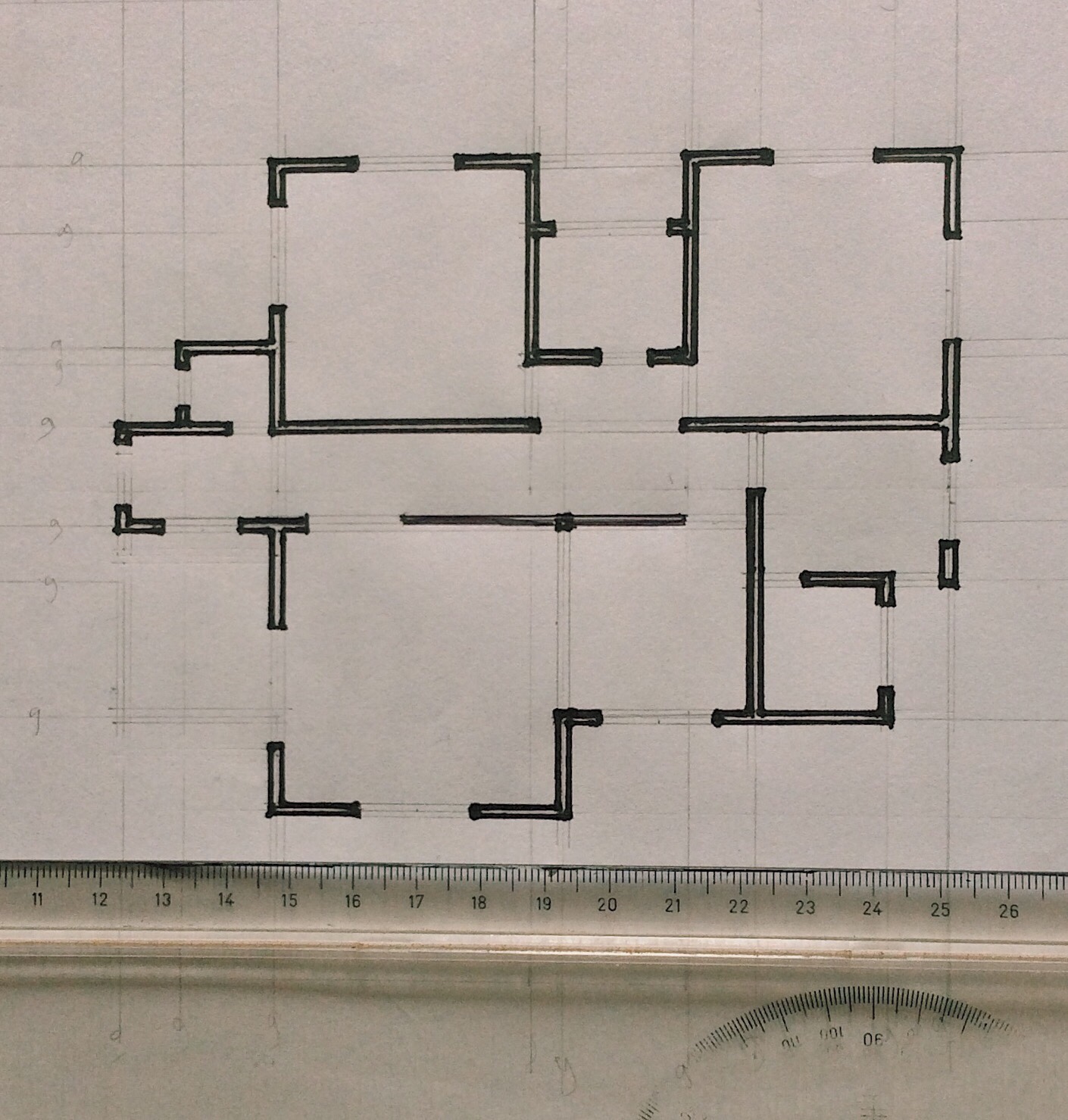 We can begin to generate the perspective image. We are going to identify the connectivity of the walls and add line weight to them.