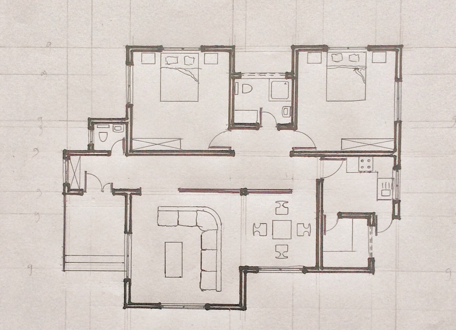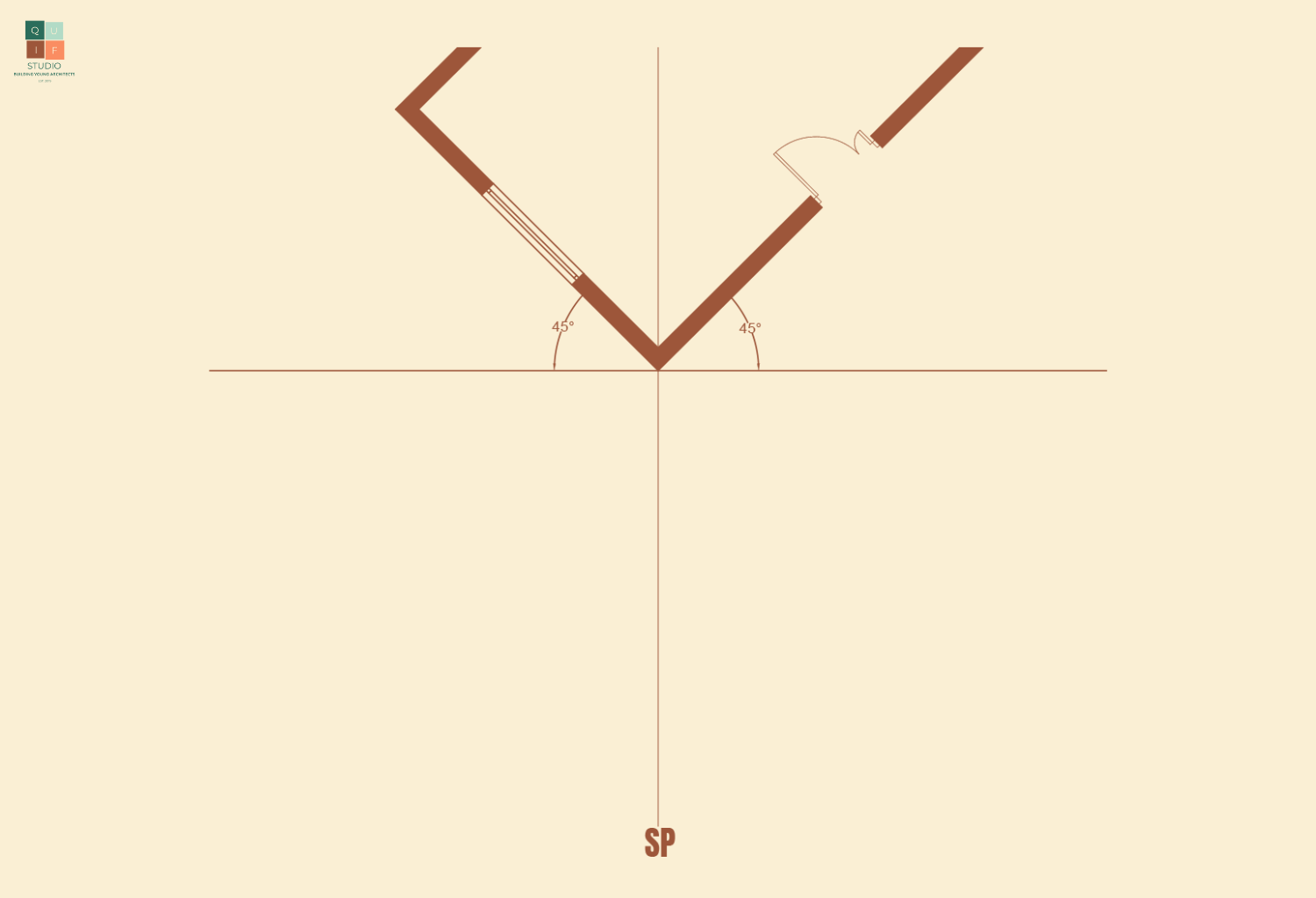 The first step in drawing a perspective from a floor plan is to orient the building to a desired angle of view. The angle we choose will have an effect on how the drawing comes out.
