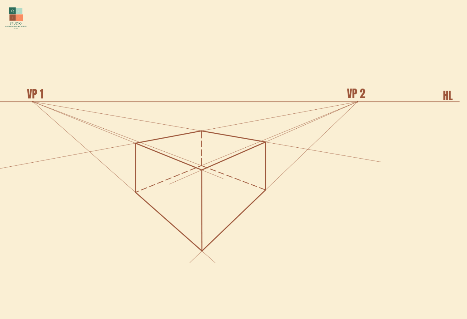 Horizon lines are usually used to position Vanishing Points (VP). In perspective view, parallel lines are perceived to converge/move towards a common point. As these lines move towards the point, the appear to disappear or vanish. That point is referred to as a vanishing point. Vanishing points are used as reference points to help guide the projection of parallel lines.