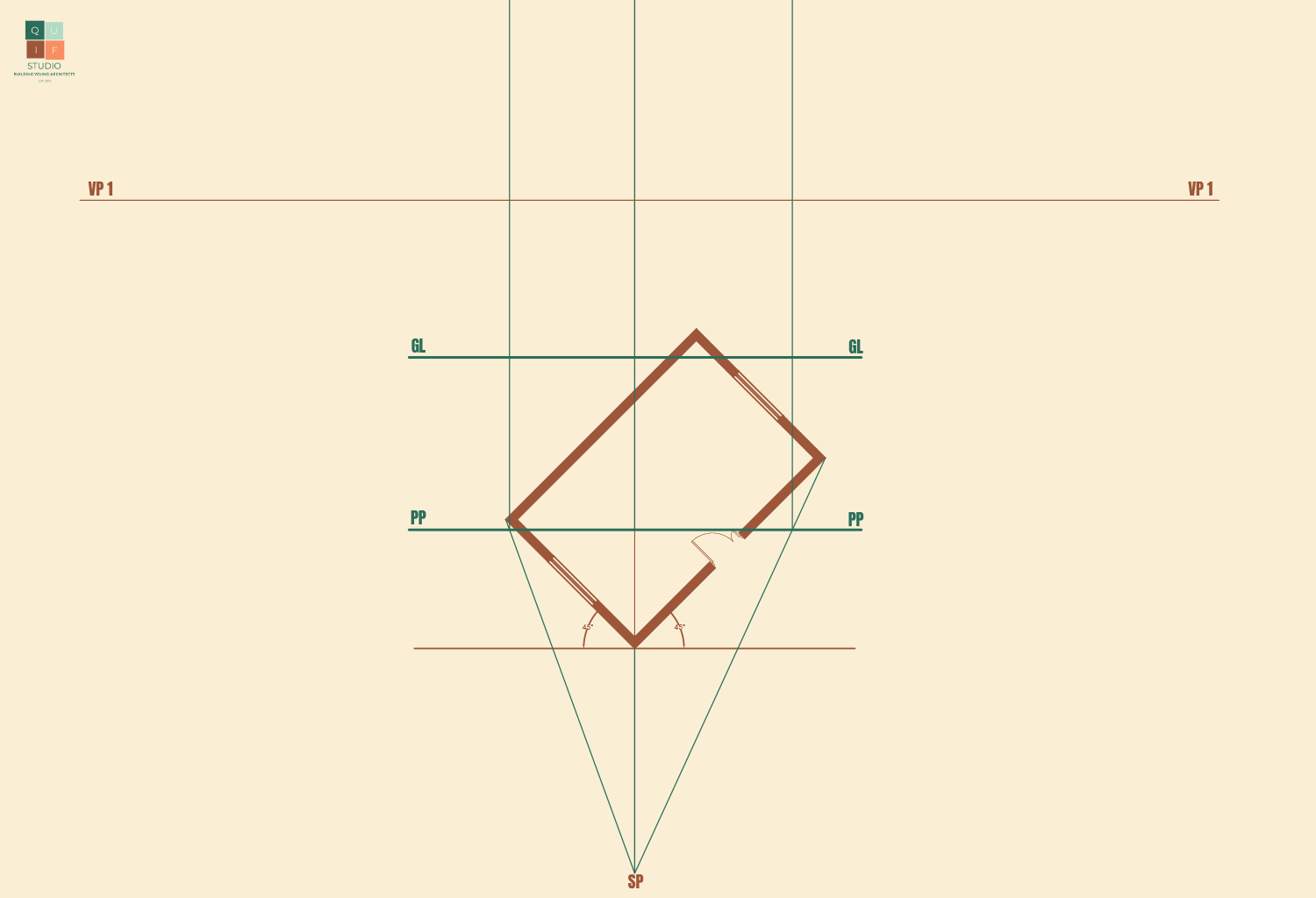 The station point can have a height from the Ground Plane (GP) which in simpler terms can be described as the floor or surface a spectator is standing on. This is the height or level from where a person is viewing an object.