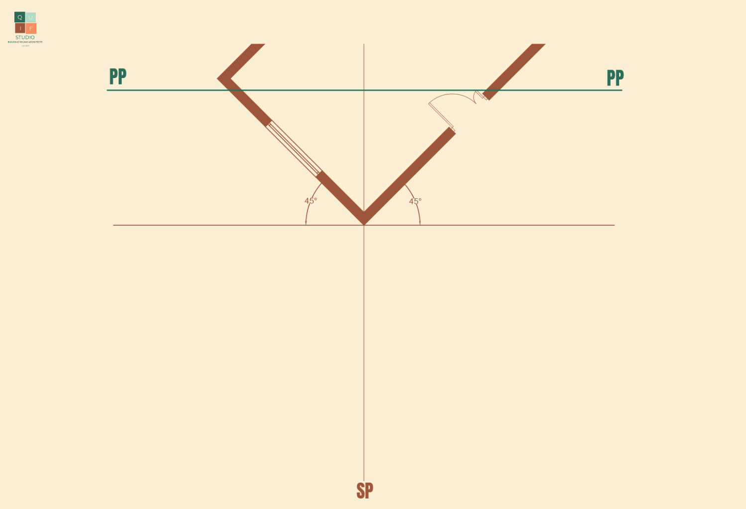 Since we use our eyes to view objects, in drawings, a single eye is used as the primary reference for all the lines in a perspective drawing. The location/position of the eye can determine so much about how we perceive an object. This location/position is referred to as the Station Point (SP).